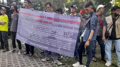 Jakarta, tvOnenews.com - Sejumlah kelompok mengatasnamakan "Gerakan Bebaskan Bawaslu Dari Masalah Korupsi" menggelar unjuk rasa di depan Kantor Kejaksaan Agung dan Komisi Pemberantasan Korupsi (KPK), Jakarta, Kamis (12/6/2025). Unjuk rasa ini terkait dugaan anggaran command center bawaslu RI tahun 2024 yang merupakan hasil dari temuan BPK RI, diduga merugikan negara sekitar Rp11 Miliar.