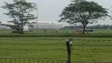 Kemudian, pada pukul 10.55 WIB, pesawat mendarat darurat di Bandara Kualanamu dalam keadaan selamat.