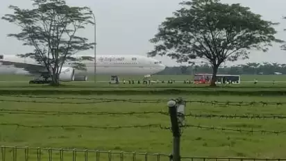 Sebelumnya, pesawat Saudi Airlines rute Jeddah-Jakarta dengan nomor penerbangan SI-576 mendarat darurat di Bandara Kualanamu Medan.