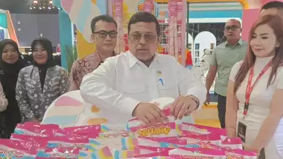 Jakarta, tvOnenews.com - Kepala Badan Penyelenggara Jaminan Produk Halal (BPJPH), Ahmad Haikal Hasan, mengunjungi booth jajanan anak Chomp Chomp dalam ajang Indonesia International Halal Festival (IIHF) 2025 yang digelar di Jakarta International Convention Center (JICC), Senayan, Jakarta, pada Minggu (22/6/2025).