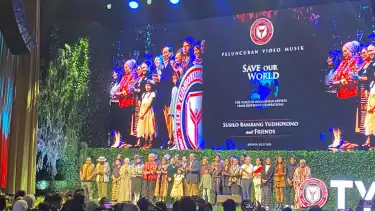 Jakarta, tvOnenews.com - Presiden ke-6 RI Susilo Bambang Yudhoyono (SBY) meluncurkan video musik berjudul “Save Our World” pada Selasa (1/7/2025). Dia berkolaborasi dengan 35 musisi Indonesia.