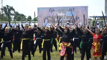 Pulang Pisau, tvOnenews.com - Tari Mandau kolosal yang dilaksanakan dalam memeriahkan rangkaian hari jadi Kabupaten Pulang Pisau ke 23 di Stadion HM Sanusi bukan saja pecahkan Museum Rekor Indonesia (MURI), tapi tarian dengan melibatkan lebih dari 1.000 penari ini layak tercatat pecahkan rekor dunia, Rabu (2/7/2025).
