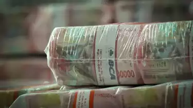 Tumpukan uang terdiri dari pecahan Rp50 ribu dan Rp100 ribu.