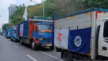 Truk-truk besar yang terparkir itu ditempeli sejumlah spanduk terkait tuntutan mereka terutama tentang penentangan terhadap RUU "Over Dimension Over Loading" (ODOL).