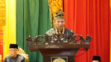 Kapolri Jenderal Listyo Sigit Prabowo menerima Anugerah Adat Ingatan Budi dari Lembaga Adat Melayu (LAM) Riau, Sabtu (12/7/2025), dalam prosesi adat di Balai Adat LAM Riau, Jalan Diponegoro, Pekanbaru.
