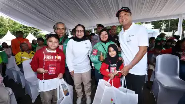 Program yang diberi tema SESAMA: Seribu Seragam Sekolah Bersama Pertamina itu digelar di Jakarta, Minggu Pagi , 13 Juli 2025 dengan dihadiri ribuan pemgemudi ojek dan keluarganya.