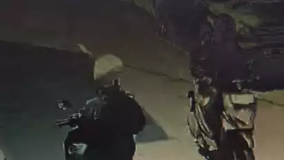 Tiba-tiba, sepeda motor Yamaha Nouvo berwarna silver yang dikendarai pelaku dengan ciri-ciri mengenakan jaket hitam, masker, dan helm putih, bergerak ragu-ragu untuk putar balik.