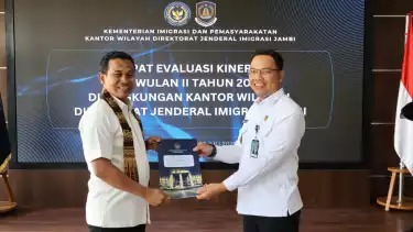 Dalam Rapat Evaluasi Kinerja Triwulan II Tahun 2025, salah satu poin penting yang menjadi sorotan adalah capaian pelaksanaan tugas pokok dan fungsi (tusi) keimigrasian, Kantor Wilayah dan UPT Keimigrasian se-Provinsi Jambi mencatat capaian signifikan sepanjang Semester I Tahun 2025.