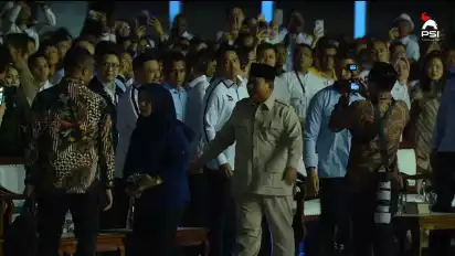 Dalam tayangan langsung kanal YouTube PSI, Prabowo tiba sekitar pukul 19.35 WIB dengan mengenakan setelan safari cokelat dan kopiah hitam. Ia disambut hangat oleh Wakil Presiden RI Gibran Rakabuming Raka, Ketua Umum PSI Kaesang Pangarep, serta tokoh-tokoh partai seperti Raja Juli Antoni.
