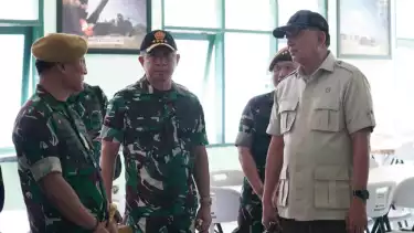 Jakarta, tvOnenews.com - Panglima TNI Jenderal TNI Agus Subiyanto bersama Menteri Pertahanan RI Sjafrie Sjamsoeddin melaksanakan kunjungan kerja ke Pusat Pendidikan Artileri Medan (Pusdik Armed) TNI AD dan Pusat Pendidikan Pembekalan Angkutan (Pusdik Bekang) TNI AD, yang berlokasi di Cimahi, Jawa Barat, Kamis (24/7/2025).