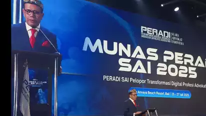 Jakarta, tvOnenews.com - Musyawarah Nasional (Munas) Perhimpunan Advokat Indonesia Suara Advokat Indonesia (Peradi SAI) 2025 resmi dibuka di Ballroom The Anvaya Beach Resort, Kuta, Bali, Jumat (25/7). Acara yang akan diakhiri dengan pemilihan ketua umum baru ini dihadiri oleh seluruh pengurus baik pusat, provinsi, hingga kabupaten dan kota seluruh Indonesia.Â