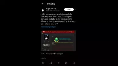 "Hello Indonesian people (especially the people of West Java), could your personal data be in my possession? Where is the cyber defense? Is it asleep on a pile of money? (Halo masyarakat Indonesia (terutama masyarakat Jawa Barat), mungkinkah data pribadi Anda ada di tangan saya? Di mana pertahanan sibernya? Apakah ia tertidur di atas tumpukan uang?)," tulis akun tersebut.