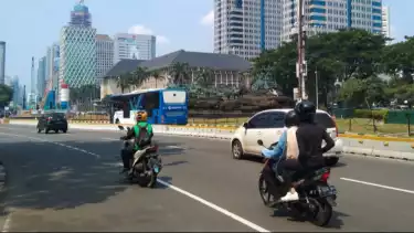 Jalur transportasi umum yakni TransJakarta dari arah Harmoni menuju Thamrin juga terlihat lalu lalang seperti biasa.