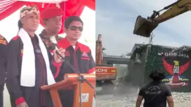 Perobohan gedung GRIB Jaya di Sumut menggunakan alat berat, meski sempat ada perlawanan langsung dari pihak anggota Hercules.