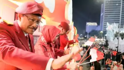 Karnaval itu lalu ditutup dengan pesta kembang api spektakuler yang membentuk angka “80” dan bendera merah putih di langit Jakarta.(ant/ree)