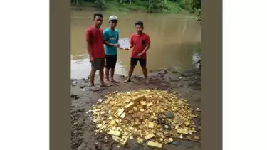 Jakarta, tvOnenews.com - Foto temuan emas di sungai viral di media sosial Facebook. Dalam foto itu tampak tiga orang pria sedang berdiri di pinggir sungai.