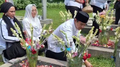 Selain ke makam Habibie, di TMP Kalibata Kaesang juga berziarah dan menggelar tabur bunga di makan mantan Ketua MPR Taufik Kiemas dan Kristiani Herrawati atau yang lebih dikenal dengan nama Ani Yudhoyono.