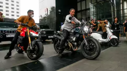 “Motornya Ducati ya, nanti bisa dilihat. Warna biru. Platnya pun tidak resmi karena dibeli off the road. Sampai sekarang belum diurus BPKB dan STNK,” ujar seorang pejabat KPK dalam konferensi pers.