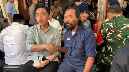 Kala sedang asik ngopi, tiba-tiba Gibran dihampiri sesosok pria yang memiliki paras dan penampilan mirip Ketua Umum Partai NasDem Surya Paloh.