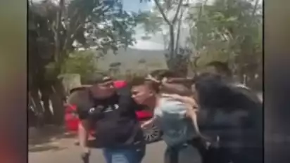 Penangkapan dilakukan di tepi jalan, di sebuah rumah kayu. Tampak beberapa warga menyaksikan ditangkapnya Bripda Alvian.