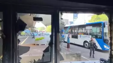 Berdasarkan pantauan tvOnenews.com, pos polisi tersebut mengalami kerusakan kerangka jendela hingga seluruh kaca pecah.