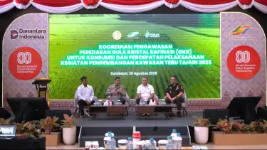 Surabaya, tvOnenews.com - Langkah strategis menuju swasembada gula nasional terus digulirkan. PT Sinergi Gula Nusantara (SGN) bersama Direktorat Jenderal Perkebunan RI, Holding Perkebunan Nusantara (PTPN III), serta aparat penegak hukum menggelar rapat koordinasi di Kantor SGN Surabaya, Senin (25/8).