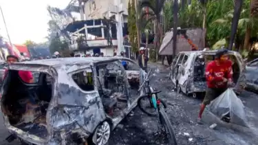 Berdasarkan pantauan pada Sabtu (30/8/2025), mereka mengambil onderdil dari bangkai mobil yang terbakar.