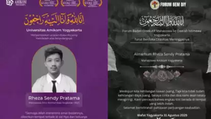 "Kami segenap FORUM BEM DIY turut berduka cita yang sedalam-dalamnya. Semoga Allah SWT melapangkan kuburnya, mengampuni segala khilafnya, serta menempatkan almarhum di sisi terbaik-Nya. Kepada keluarga yang ditinggalkan, semoga diberi ketabahan dan kekuatan," tulis Instagram @forumbemsediy, dikutip pada Minggu (31/8/2025).