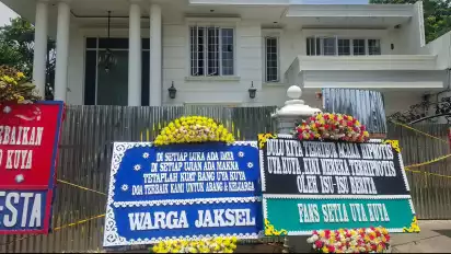 Mayoritas karangan bunga berisi dukungan kepada Uya Kuya pasca penjarahan yang terjadi 30 agustus lalu.