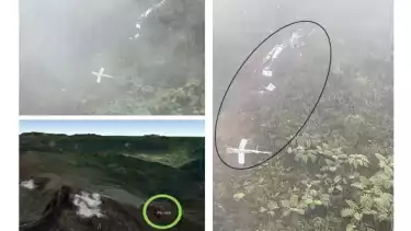 Foto-foto dari lokasi menunjukkan badan helikopter hancur di lereng pegunungan yang tertutup kabut tebal.