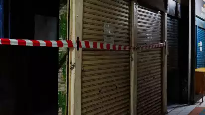 Pada Senin (16/9), pintu ruko tersebut tampak tertutup rapat dengan garis segel merah putih dan ditempeli surat pemberitahuan.