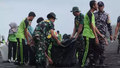“TNI bersama stakeholder yang lain hadir secara nyata dan membantu mengatasi permasalahan sampah yang ada di Pantai Dewaruci,” ucap Dandim.
