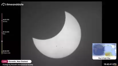 Momen pertama gerhana terlihat jelas dari ufuk timur Selandia Baru. Siaran langsung dari Time and Date memperlihatkan siluet bulan perlahan bergerak dari kiri ke kanan, menutupi sebagian cahaya matahari sesaat setelah matahari terbit.