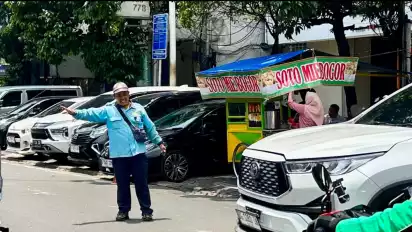 Berdasarkan pantauan langsung tim tvOnenews.com pada Senin (22/9/2025), para petugas parkir tampak mengenakan seragam biru dengan tulisan juru parkir di bagian punggung.Â