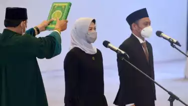 Jakarta - Ketua dan Wakil Ketua Badan Pemeriksa Keuangan (BPK) Isma Yatun dan Agus Joko Pramono mengucapkan sumpah jabatan di Gedung Mahkamah Agung (MA), Jakarta, Kamis (21/4/2022).
