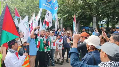 Ia menyebut, aksi ini bukan sekadar protes, melainkan pernyataan nurani dari buruh dan pekerja jalanan Indonesia yang tidak mau menjadi penonton atas tragedi kemanusiaan di Gaza.
