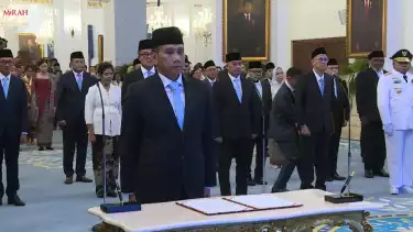 Jakarta, tvOnenews.com - Presiden RI, Prabowo Subianto, resmi melantik Komjen Pol Akhmad Wiyagus sebagai Wakil Menteri Dalam Negeri (Wamendagri) di Istana Negara, Jakarta Pusat, Rabu (8/10).