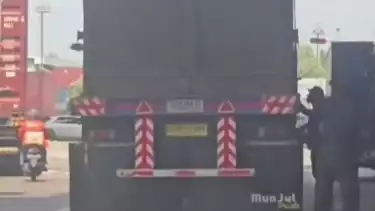 Bagaimana tidak, di tengah terik siang dan padatnya lalu lintas, empat pria terekam kamera nekat ‘mempreteli’ truk yang berhenti di lampu merah kawasan Koja.