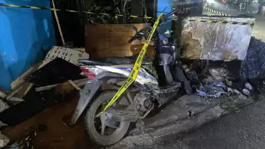 Tak cuma membakar tubuhnya dan sebuah motor, api juga menyambar beberapa bagian bangunan warung.