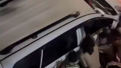Terlihat dalam video tersebut satu unit mobil berwarna putih terperosok akibat jalan tinggi sebelah itu.