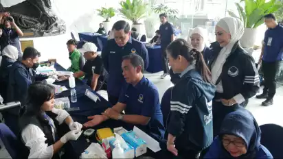 Jakarta, tvOnenews.com - Partai NasDem menggelar kegiatan cek kesehatan dan pengobatan gratis di NasDem Tower, Jakarta Pusat pada Sabtu (25/10/2025).