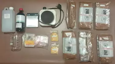Dari lokasi itu, disita bibit tembakau sintetis seberat 77 gram, tembakau biasa 843 gram serta berbagai alat laboratorium rumahan mulai dari kloroform, alkohol, timbangan elektrik hingga kompor listrik.