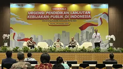 Kepala BSKDN dalam diskusi publik bertajuk “Urgensi Pendidikan Lanjutan Kebijakan Publik di Indonesia” di Unika Atma Jaya, Jakarta.