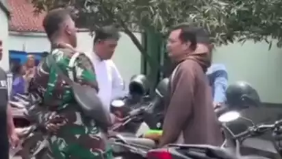 Bandung, tvOnenews.com - Sebuah video yang beredar luas di media sosial memperlihatkan seorang pria berseragam TNI tengah menginterogasi seorang warga yang diduga mengambil makanan dari tempat hajatan.