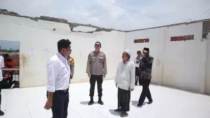 Kapolres Situbondo AKBP Rezi Dharmawan pantau ambruknya bangunan Pondok Pesantren Salafiyah di Situbondo