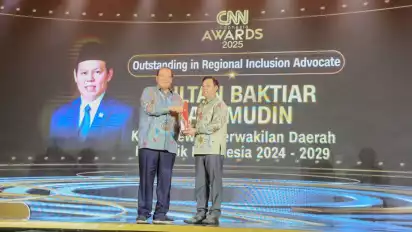 Jakarta, tvOnenews.com - Ketua Dewan Perwakilan Daerah (DPD) RI, Sultan Baktiar Najamudin kembali menerima penghargaan bergengsi. Kali ini, ia menerima penghargaan bergengsi dari media swasta dalam ajang CNN Award 2025 yang mengusung tema “Kolaborasi dan Harmoni Mencapai Asta Cita untuk Negeri.”