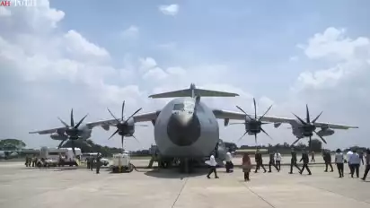 Airbus A400M tiba di Lanud Halim sekitar pukul 07.30 WIB dan disambut upacara water salute, di mana dua mobil pemadam menyemprotkan air dari sisi kanan dan kiri pesawat. Momen tersebut menandai debut pesawat multirole buatan Airbus Defence and Space yang kini resmi memperkuat armada TNI AU.