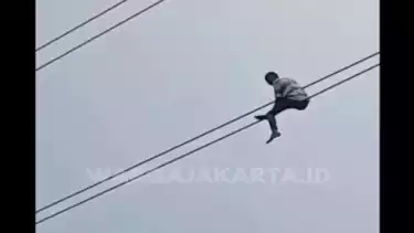 Aksinya tersebut ramai di media sosial. Berdasarkan video yang beredar pria itu nampak santai bergelantungan diantara kabel-kabel.