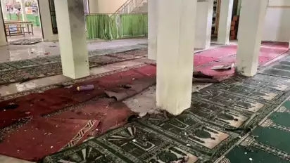 Ledakan yang terdengar sebanyak tiga kali dari arah masjid ini membuat para siswa panik dan berhamburan keluar dari masjid untuk menyelamatkan diri.