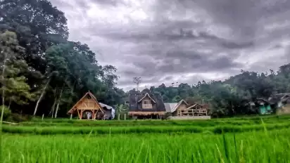 Selain rumah adat, Fery juga membangun leuit modern yang berfungsi ganda bagian bawah sebagai tempat berkumpul warga, dan bagian atas untuk menyimpan hasil tani masyarakat.